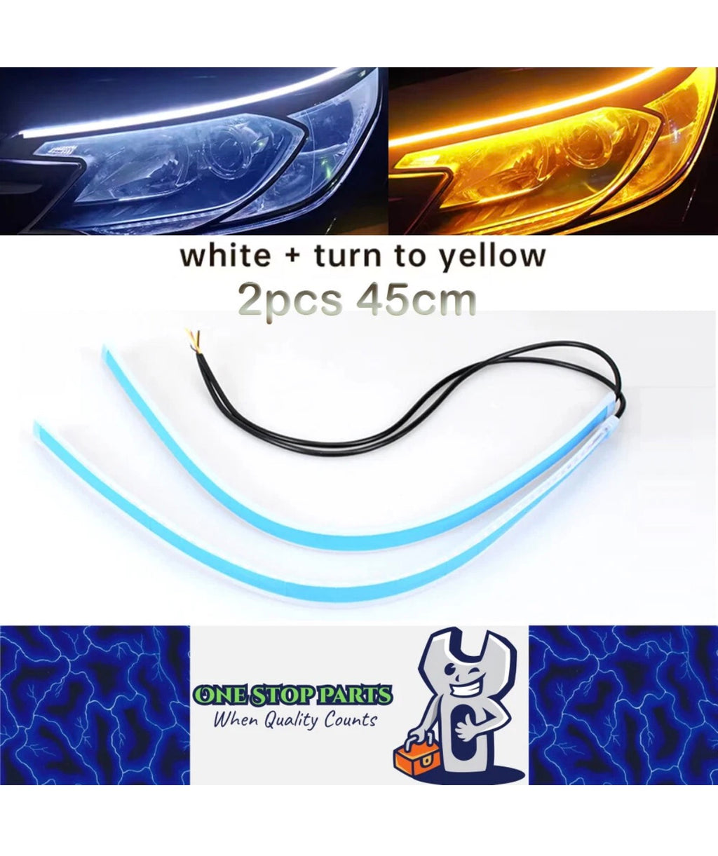 Increase your visibility and add a touch of style to your car with 2 x 60cm Car LED DRL Daytime Running Lights Flexible Strip Light. These lights can switch from a cool white to a vibrant yellow, allowing you to stand out on the road. With their flexibility, you can easily adapt them to any car model for a seamless installation.