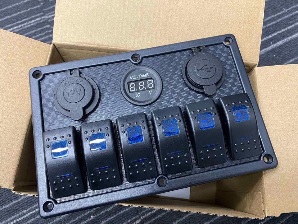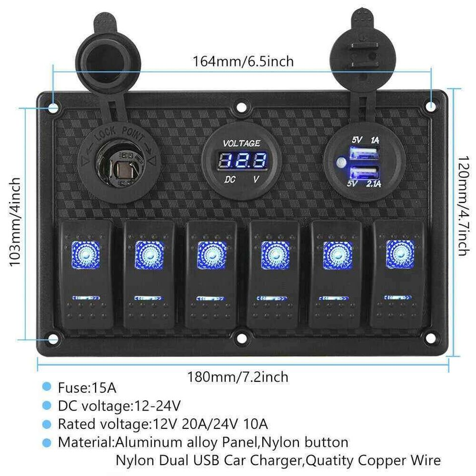 6 Gang 12V Switch Panel LED Light Rocker Circuit Breaker For Car RV Boat Marine
