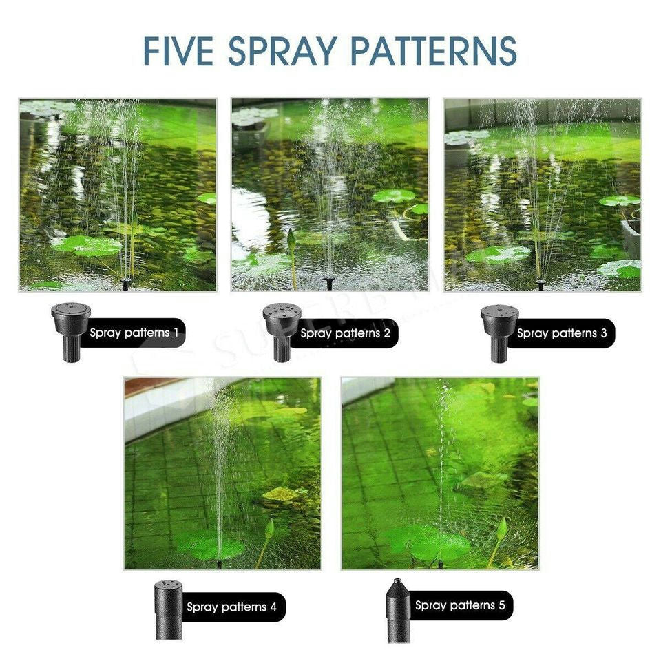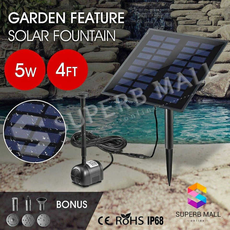 5W Solar Powered Fountain Outdoor Garden Water Pump Pond Pool Submersible Kit