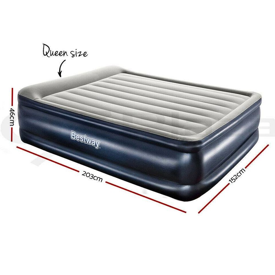 Bestway Air Bed Beds Mattress Queen Size Sleep Built-in Pump Camping Inflatable