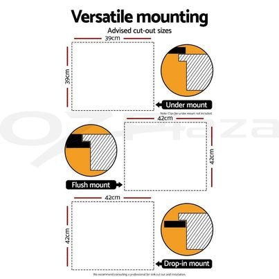 Kitchen Sink Basin Stainless Steel Under/Top/Flush Mount Bowl 440X440MM