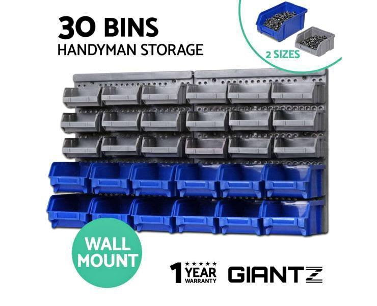 New 30 Bin Wall Mounted Rack Storage Organiser Shed Work Bench