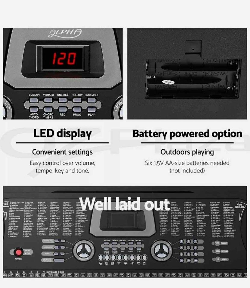 Alpha 61 Keys Digital Piano Keyboard Electronic Electric Keyboards Black