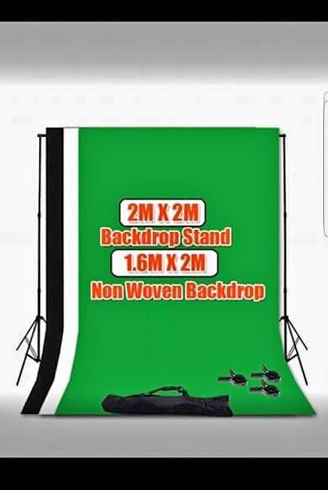 Brand new unopened. As per pic. 2x2m stand and 3x backdrops.