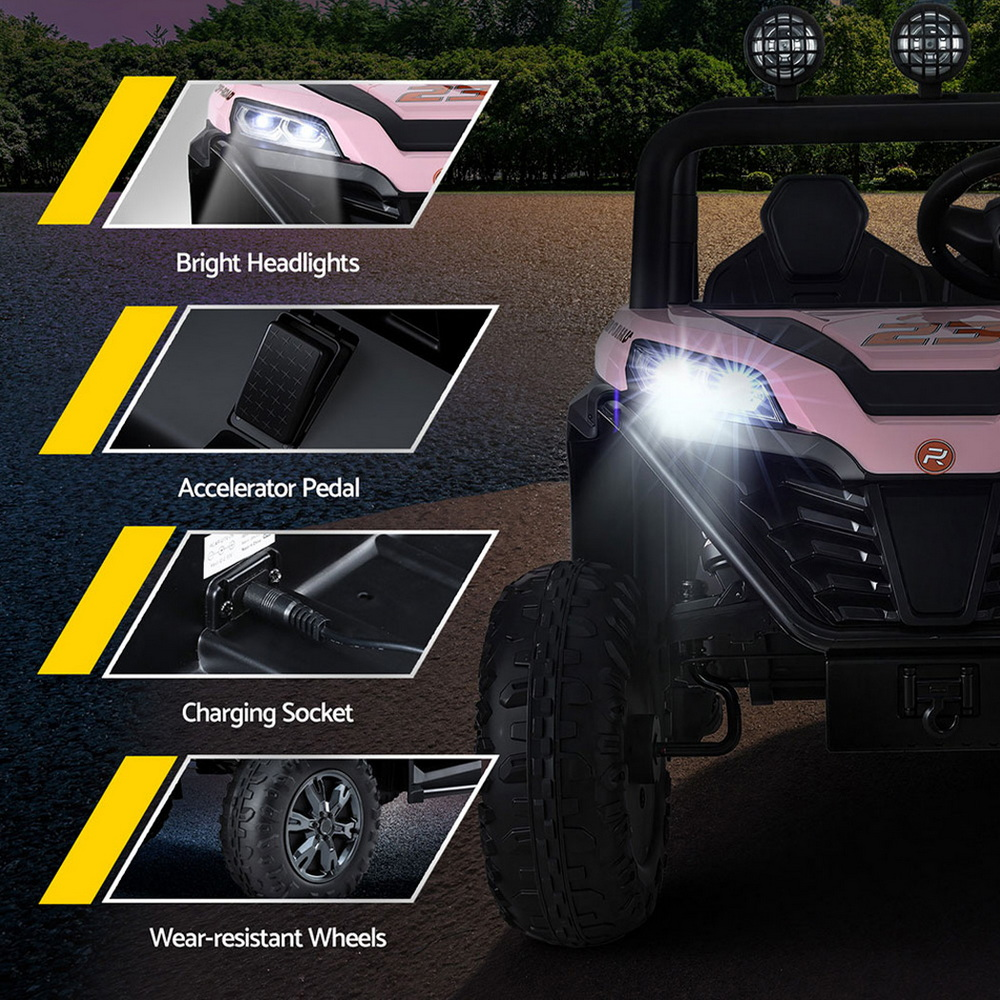 Let your little one experience the excitement of driving a ride on car. The steering wheel and acceleration pedals to control the forward and reverse movement give your child control and a realistic driving experience. It comes with some cool entertaining features that will allow your child to have hours of fun. It includes a safety seat belt and a remote control for parent supervision, making it the ideal choice for parents who want a safe and fun way for their children to explore their environment. The ride on car is the perfect gift for any young car enthusiast.
