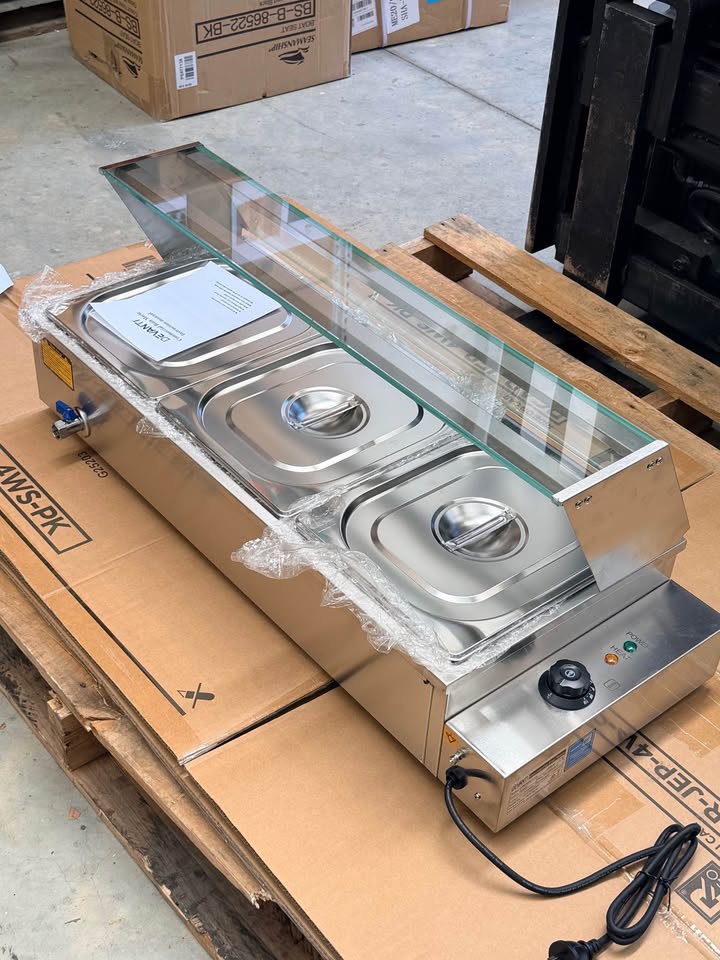 Commercial-grade Bain Marie food warmer designed to keep food hot and ready for serving. Perfect for restaurants, cafés, catering, food trucks, buffets, and events.