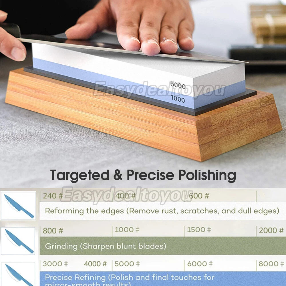 - Made from professional grade WhiteCorundum, it is corrosion-resistant, heat-resistant. The edges and corners are clearly demarcated.It can quickly sharpen dull or damaged knife with just a few pulls. It is perfect for finishing and polishing the edge. Non-slip base holds the sharpening stone securely in place so you will never have to worry about the whetstone slipping off counter. Necessary for both professional cooks and home users to sharpen a knife.