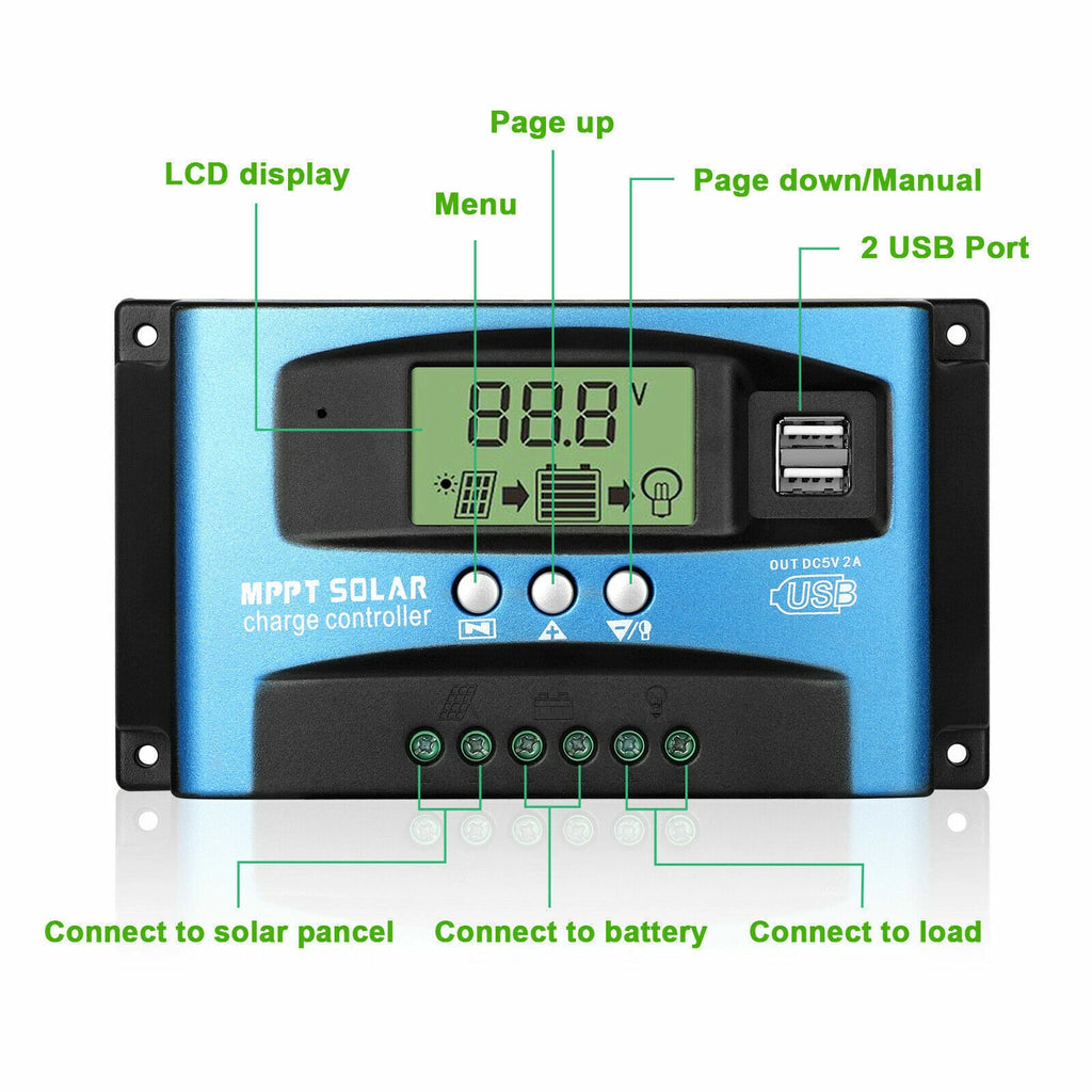 ✅100A MPPT Solar Panel Regulator Charge Controller 12V/24V Auto Focus Tracking
