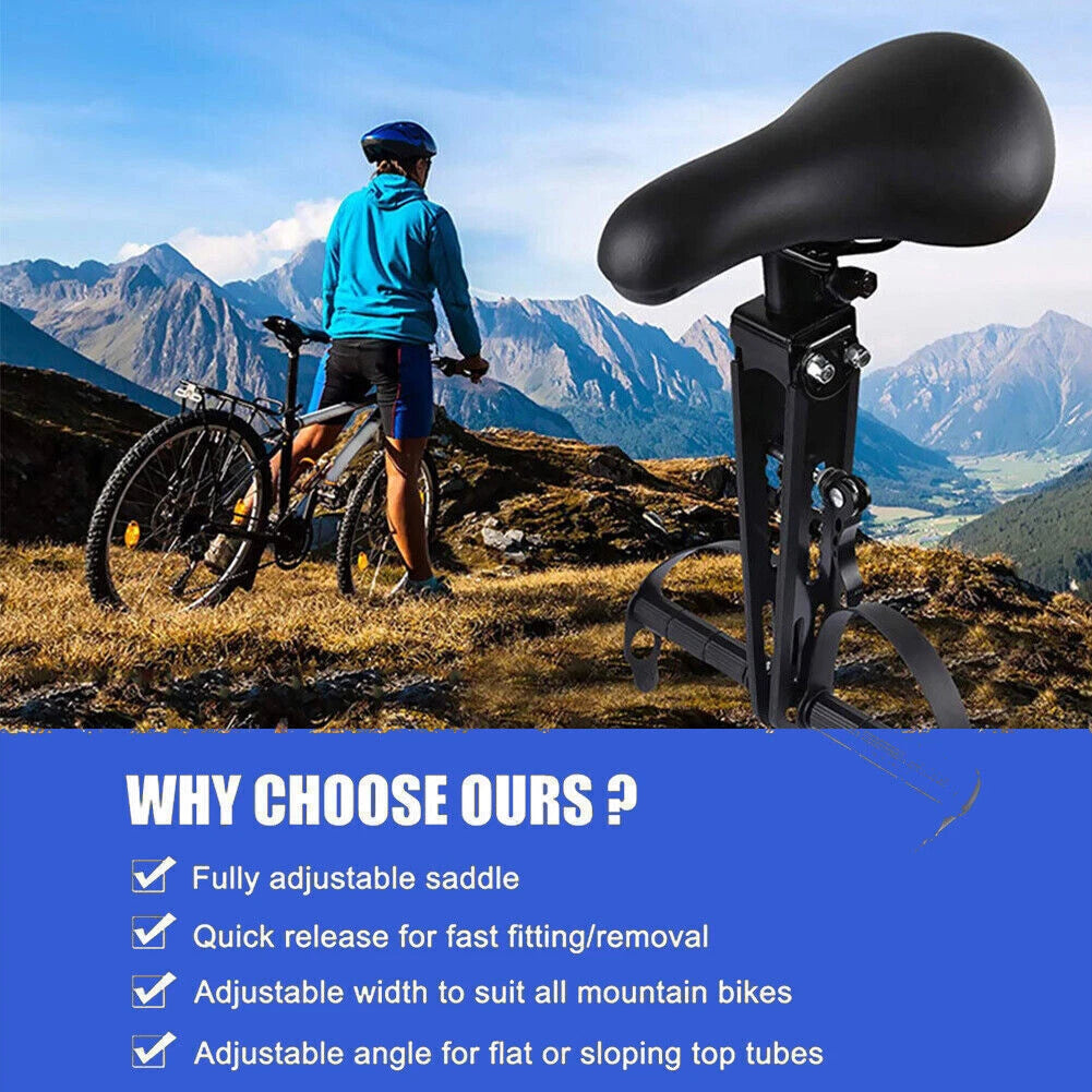 2. Fits All Mountain Bikes: The kids' mountain bike seat is adjustable to fit both flat and sloping top tubes. But it is not suitable for e-bikes, road bikes and old-fashioned bicycles with cables on the top tube.