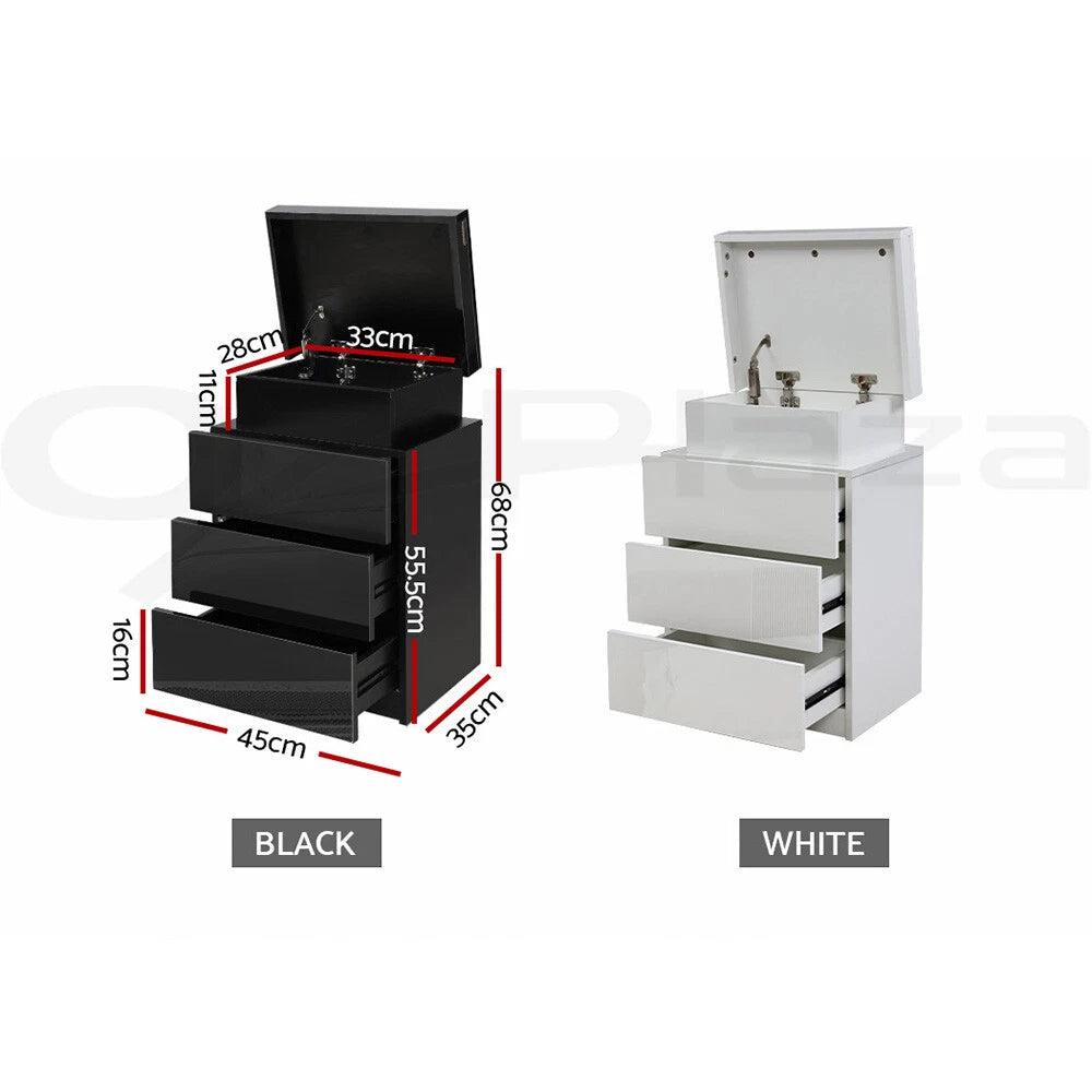- Three spacious drawers