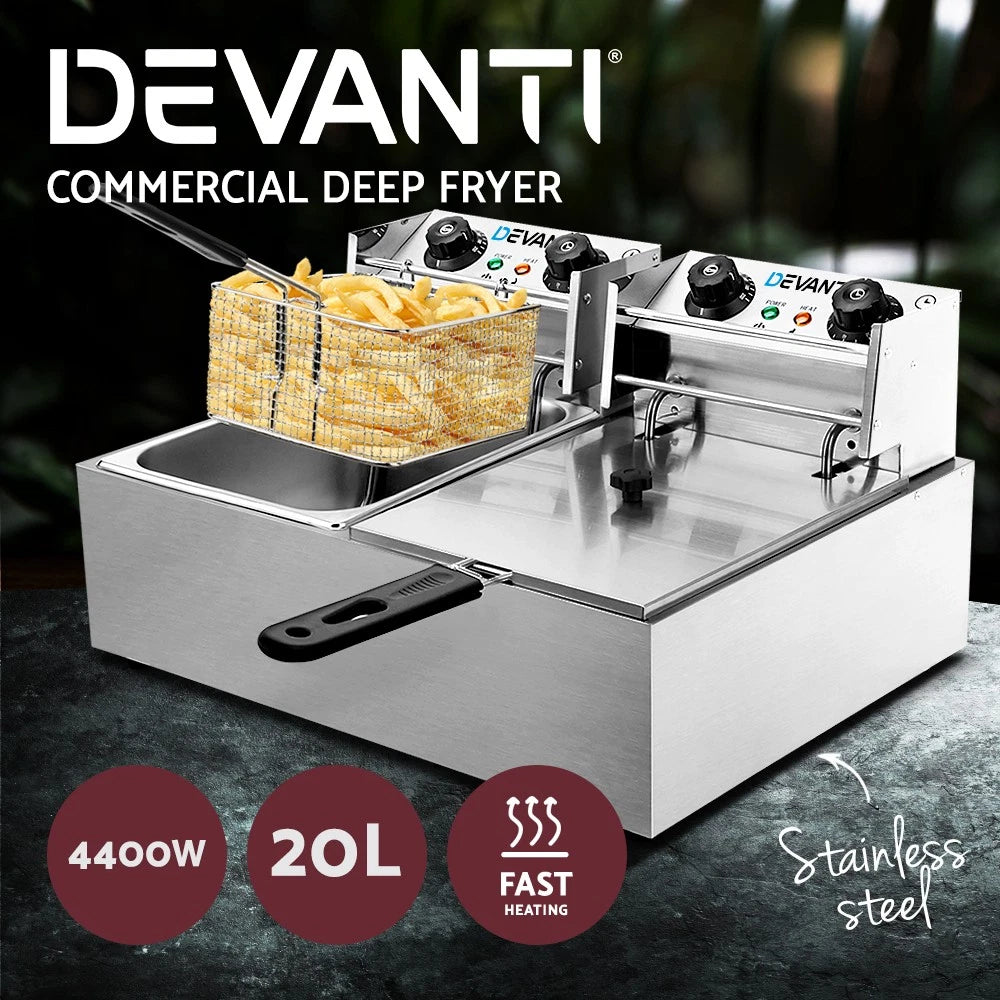 ✅Electric Commercial Deep Fryer Twin Frying Basket Chip Cooker Kitchen