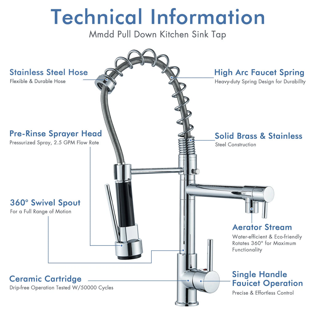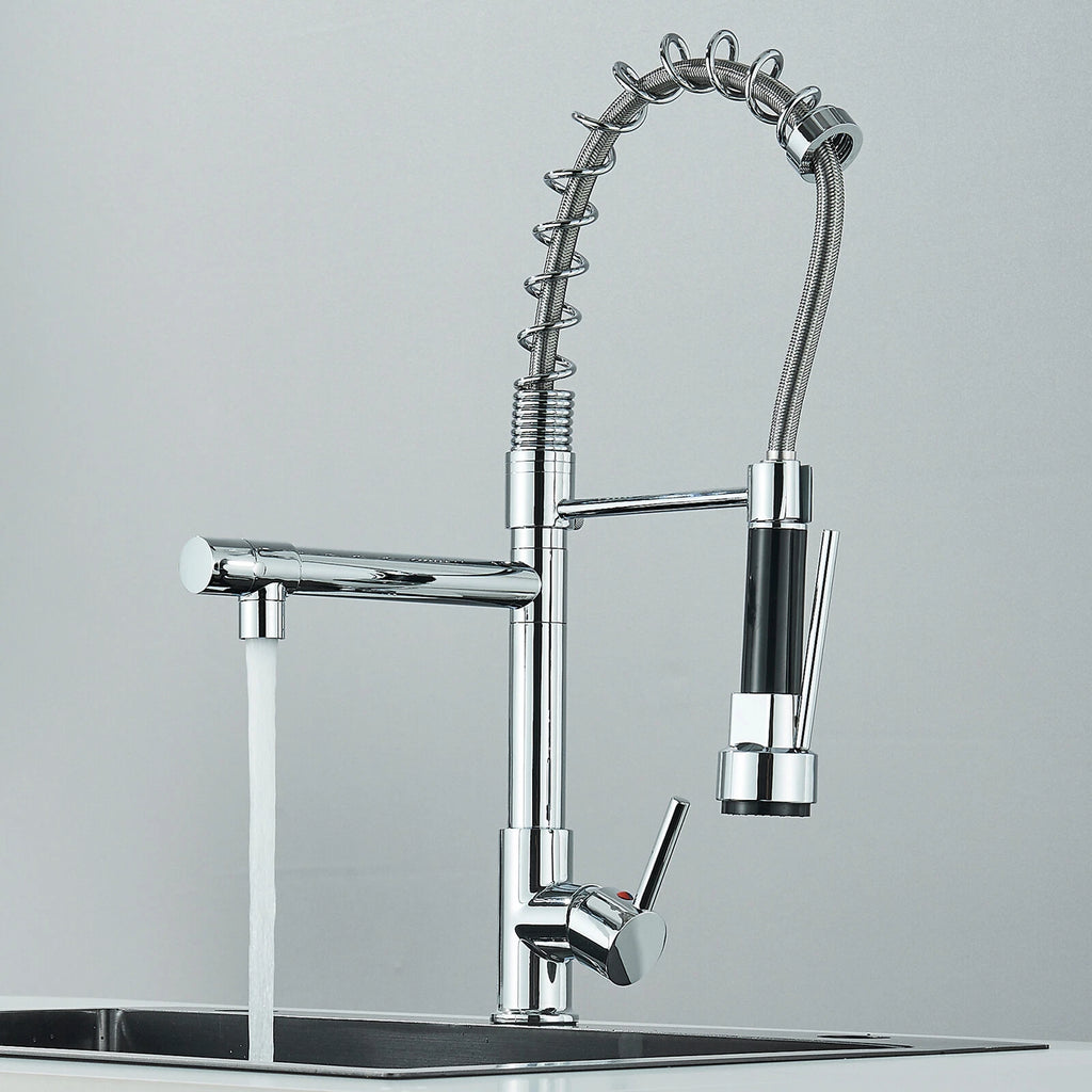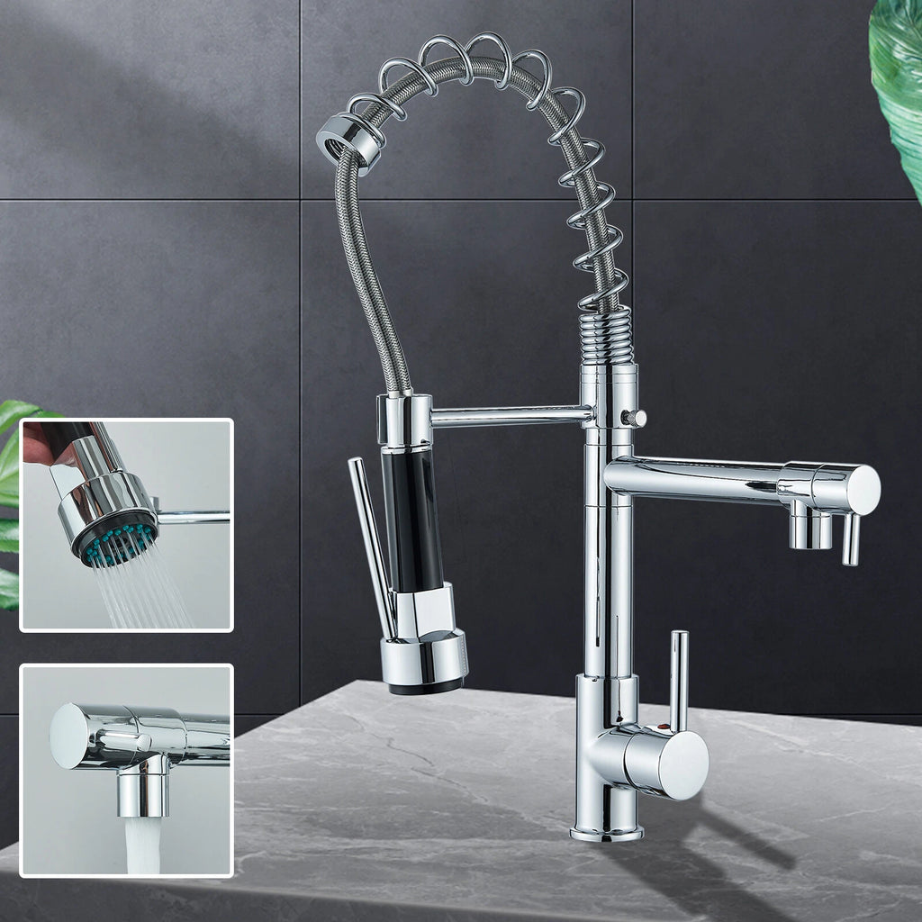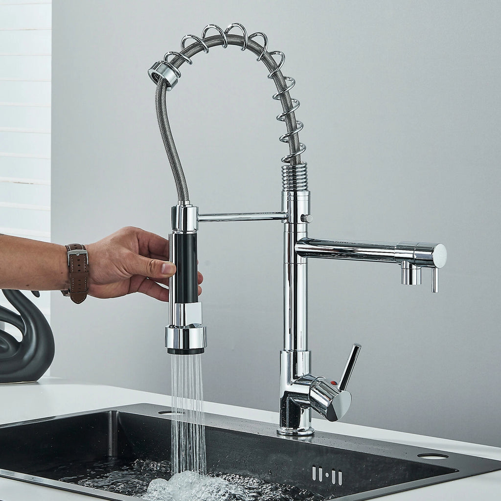 ✅Kitchen Mixer Taps 360° Swivel Pull Out Spout Spray Sink Faucet Brass