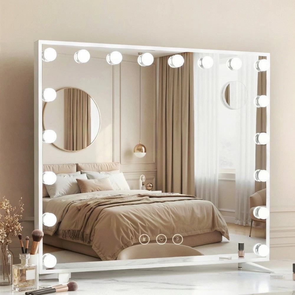 ✅Makeup Mirror 80x65cm Hollywood Vanity Mirrors w/ LED Light White Frame