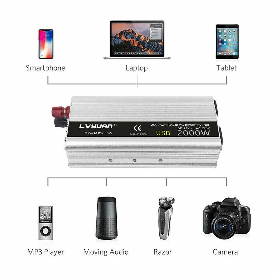 Power Inverter 800W / 2000W – 12V DC to 240V AC Caravan Converter with USB
