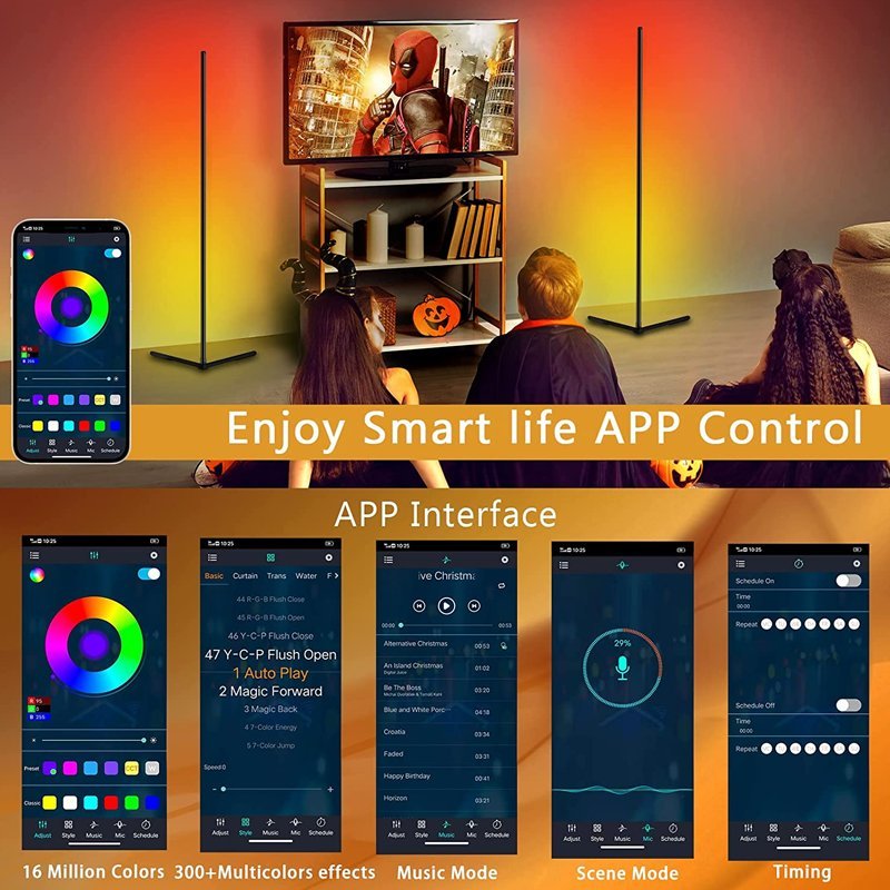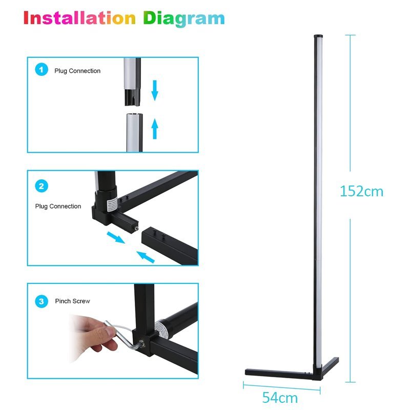 RGB LED Floor Corner Lamp Light Stand Bluetooth Remote Streaming Gaming Decor